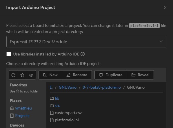 Et maintenant, si on désire compiler le code et le charger dans le vario, il faut :